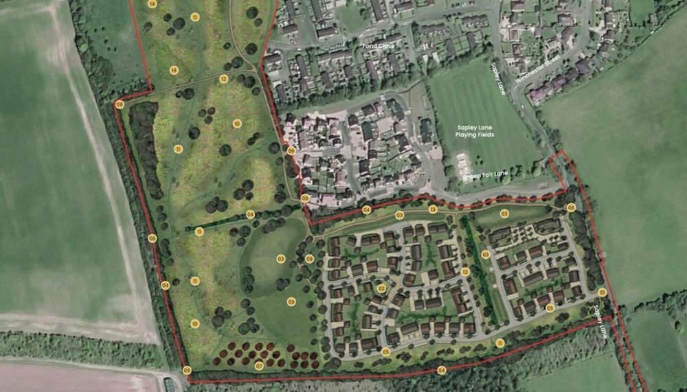 Located west of Sapley Lane, our proposed housing development would create 130 mixed-tenure new homes, providing opportunities for those looking to downsize, get onto the housing ladder, relocate, or live closer to friends and relatives. 40% will be allocated for affordable housing to be delivered by VIVID – our parent company.