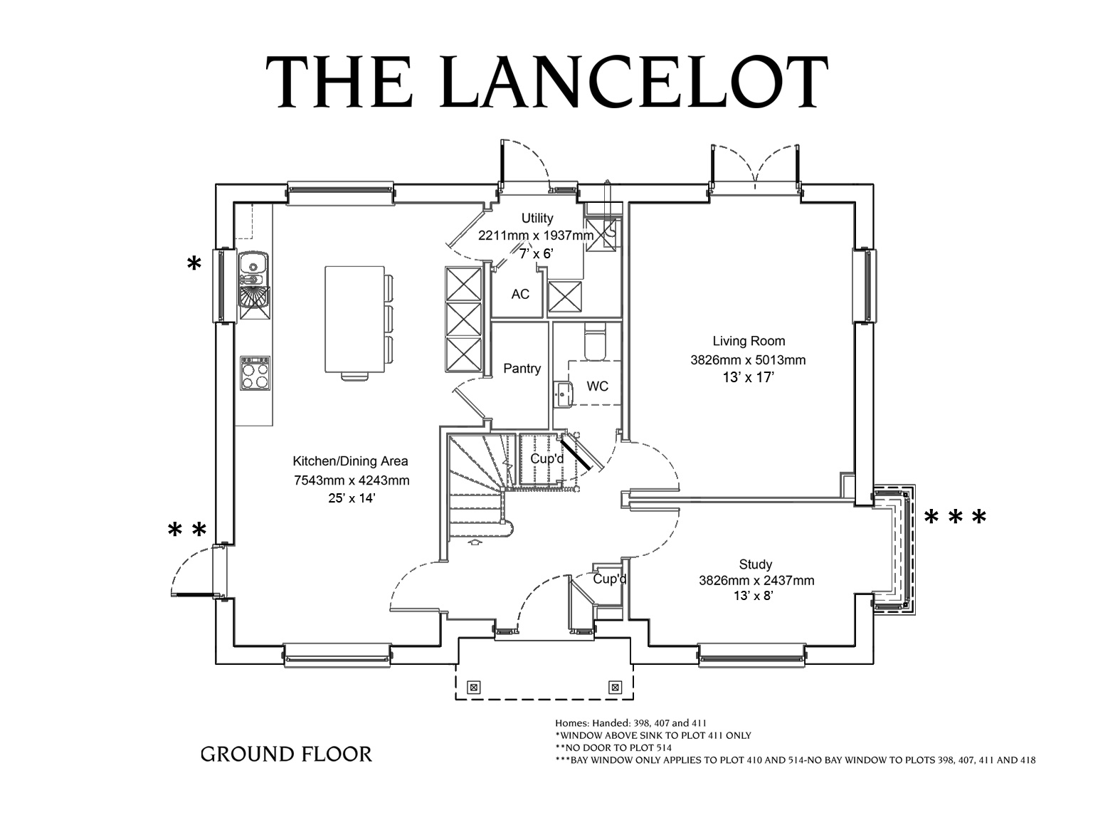 | Kitchen & Diner | 7543mm x 4243mm – 24’9″ x 13’11.1″ |